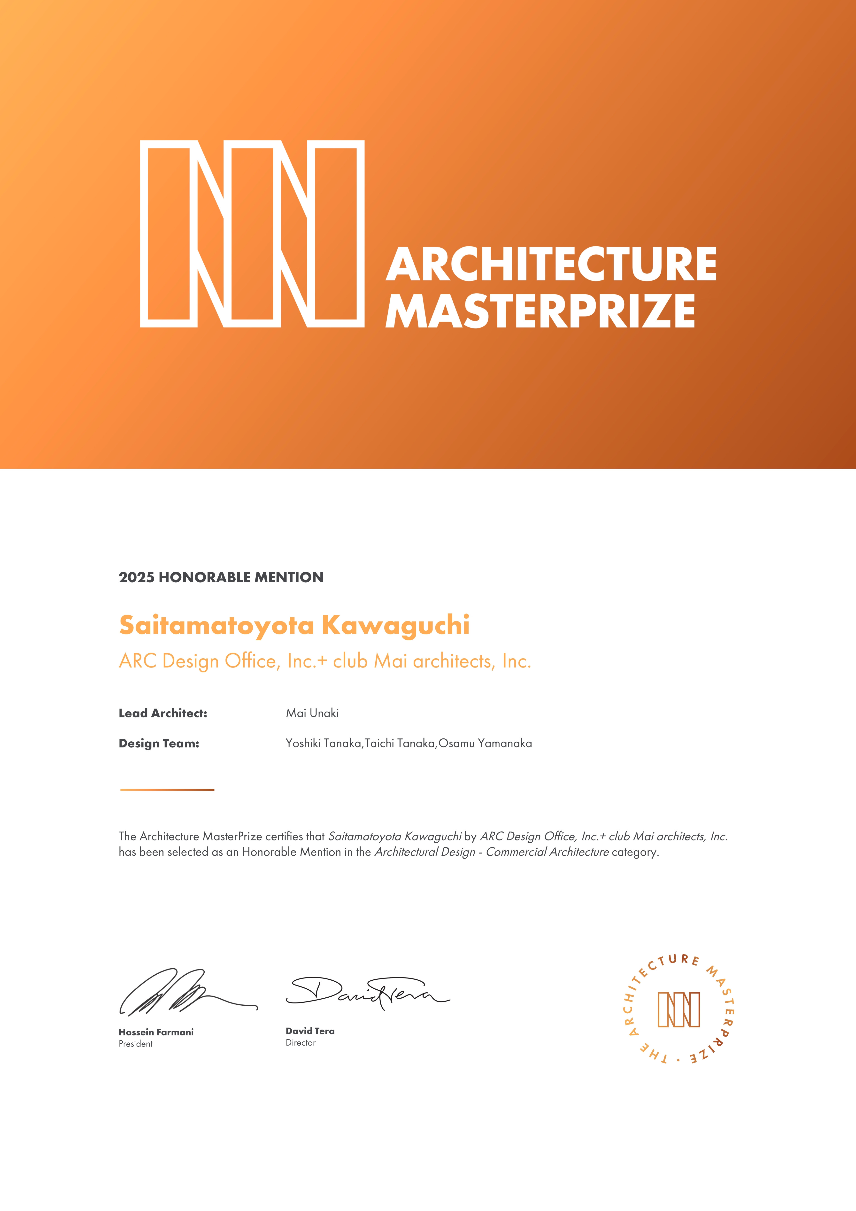 ☆Architecture Master Prizeの「HONORABLE MENTION」に選ばれました!